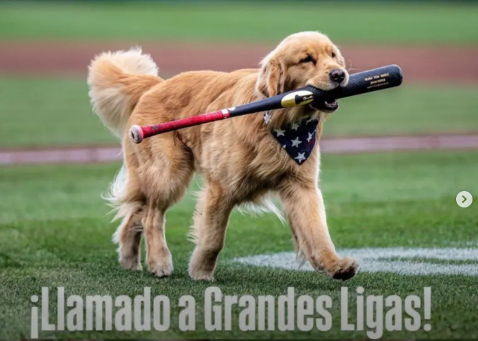 Bruce se ganó su ascenso después de registrar un promedio de búsqueda efectiva de bates de 1.000 en tres juegos esta temporada. Bruce, un golden retriever de un año y nueve meses, hizo su primera presentación profesional el pasado septiembre.