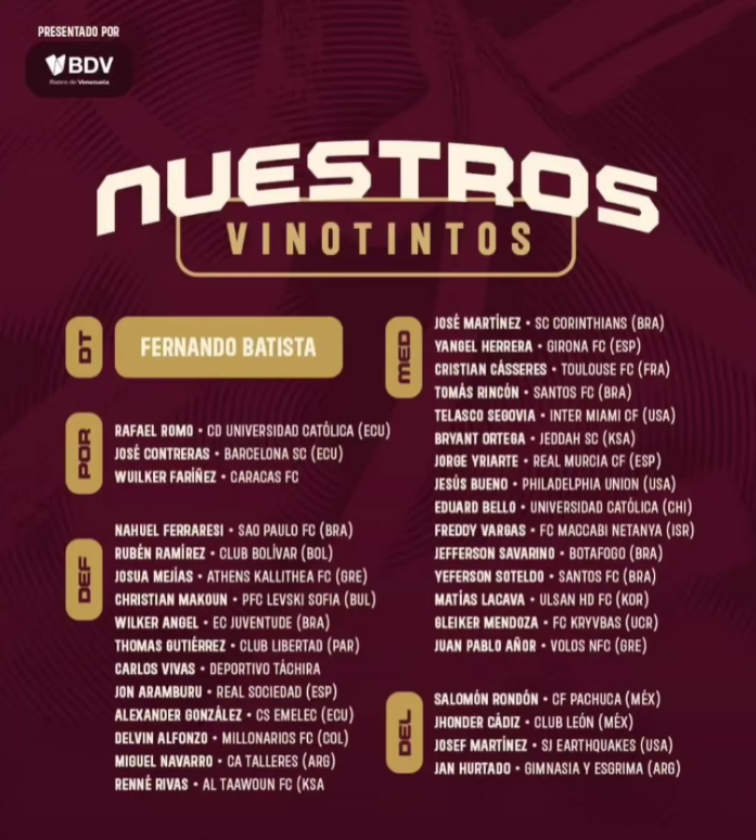 El seleccionador nacional Fernando Batista anunció la lista de convocados para la fecha 13 y 14 ante Ecuador y Perú rumbo al mundial 2026.